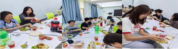 这次交流会既让同学们与老师间的距离拉近,也让远离家乡求学的同学们在商务英语这个大家庭里获得温暖。老师与同学们一起做汉堡这项活动,增进了师生情谊,加强了师生之间的交流,为接下来的专业学习奠定了坚实的基础。本次汉堡制作活动突破了传统课堂边界,构建了沉浸式跨文化学习场景。通过食物这一文化载体,师生共同完成从原料选择到文化解码的全过程,这种具身认知实践使跨文化交际能力培养从理论层面落地为可操作的日常经验。