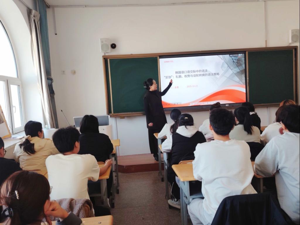 2025年10月23日,英国上市公司官网365金香博士于文华楼406教室成功举办主题为“韩国语口语交际中的语法“妥协”:礼貌、权势与话轮转换的语法策略”的学术报告会。本次报告会聚焦韩国语语用特征的深层机制,旨在深化师生对韩国语口语交际规律的认知,为韩国语教学改革与学术研究提供理论参考与实践支撑。
