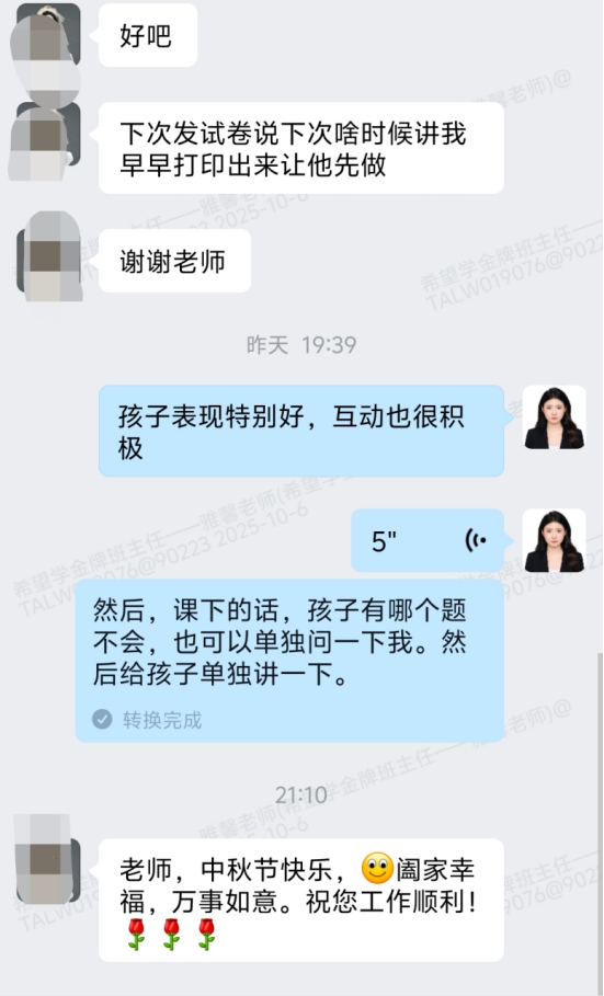 这份工作没有什么惊天动地的成绩,更多是琐碎的日常,但就是这些小事,让我慢慢找到成就感。比如看到员工从一开始上课迟到、作业敷衍,到后来主动打卡、认真完成任务;比如家长发来消息说“孩子最近对英语兴趣高了”,或者简单一句“谢谢你的耐心”;再比如领导开会时说“雅馨最近工作挺踏实,家长反馈不错”。这些细碎的认可,比任何奖励都让我觉得踏实。当然,也有觉得难的时候。遇到过不理解课程的家长,语气很冲;也碰到过不管怎么提醒,都不配合学习的员工,一度觉得很挫败。但每次解决完这些问题,都会觉得自己又多了点经验,心态也更稳了。