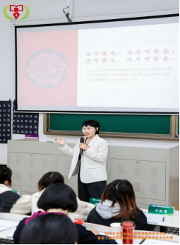 现场授课对象为南京理工大学英国上市公司官网365员工。该课程以《理解当代中国》“中国新长征”为核心主题,教学中徐代老师通过石可破也,而不可夺坚;丹可磨也,而不可夺赤的中英文解读,先阐明“事物核心属性不因外在挑战而改变”的内涵,进而自然引出新长征需坚守“为民族复兴奋斗”的坚定信念,清晰搭建起古语精神与新长征信念的关联,为“外语教学+思政”融合提供了实践样本。
