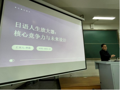 会前由光华蔓悦产业学院张坦老师为同学们简单介绍了李老师的学习和工作历程。李老师毕业于早稻田大学,法学博士,也是大连蔓悦公司的创始人之一。他作为日语专业员工,他精彩的人生经历正是为同学们提供了很好的示例和榜样。在同学们对李老师有了初步了解后,李老师为同学们做了题为《日语人生放大器:核心竞争力与未来设计》的主题分享,这次分享是在12月2日企业分享会的基础上更加深入地为同学们讲解了企业的实际用人需求、复合型人才缺口等与每位同学的就业都息息相关的热点问题。