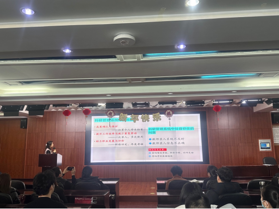 科研秘书李晓媚老师围绕2025年度科研工作情况、项目结项注意事项、科研管理系统使用及2026年项目申报安排等内容作了详细说明。
