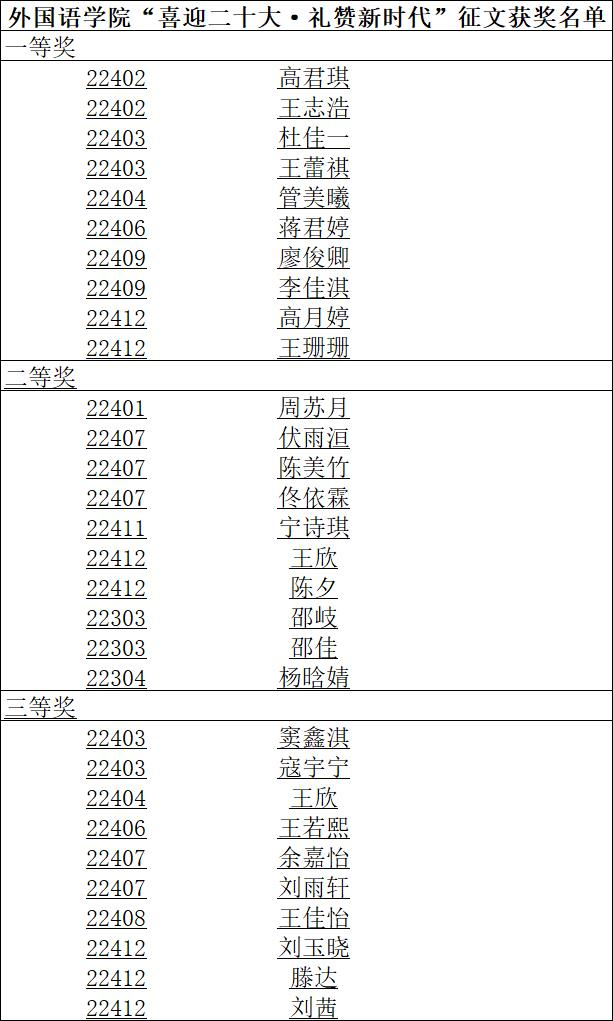 依照班级成员参赛人数,特评选英语22403班、俄语22407班、商务英语22412班为“优秀组织”获奖班级。