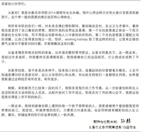 目前英语系已经成功开展三届赴新西兰带新语言实践,员工在新西兰境内学习、工作,考取了TESOL证书,同时积累了社会经验、提高了语言应用能力,为毕业后出国继续深造奠定了基础。